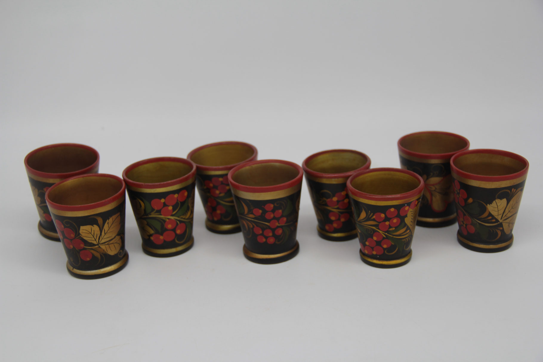 Die Becher sind zwischen 5,6 und 6,2cm hoch und in gutem bis sehr gutem Zustand.
