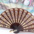Der Fächer ist zusammengeklappt 25cm lang und aufgeklappt 45cm breit. Er ist in sehr gutem Zustand.