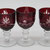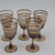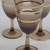 Die Gläser sind 12,5cm hoch und bis auf eines mit einer Schlagstelle am Fuß, in gutem (minimaler Chip) bis sehr gutem Zustand.