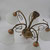 Die Lampe hat einen Durchmesser von ca. 55cm und ist 50cm hoch. Die fünf Lampenglocken sind 22cm hoch. Insgesamt ist sie in gutem Zustand - ein Arm wurde wieder eingelebt und die Lampenglocken